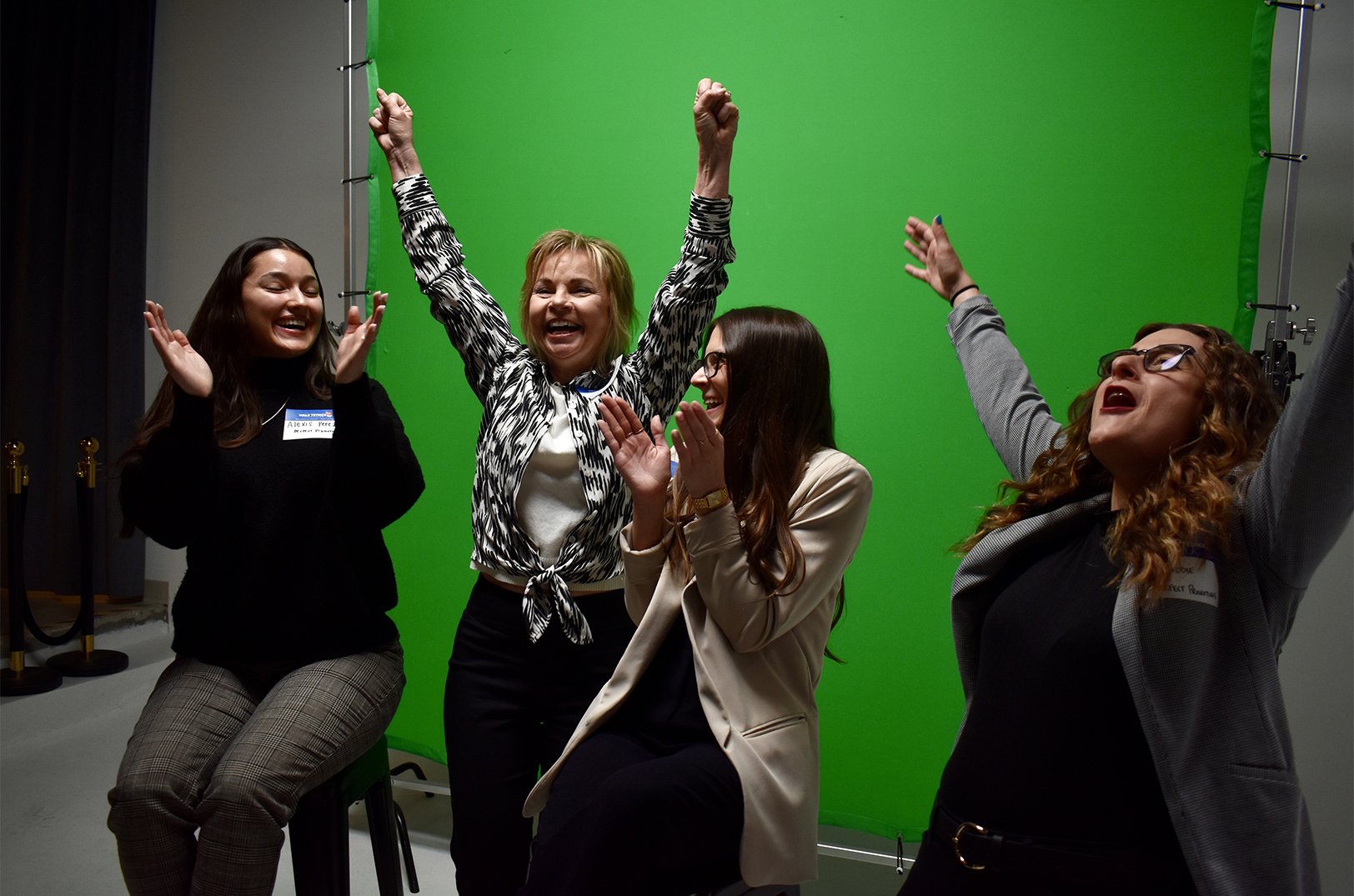 Kim Finley, president of Perfect Promotions, standing, and her team react to again being named to the Top 10 in the KC Chamber’s Small Business of the Year competition; photo by Nikki Overfelt Chifalu, Startland News