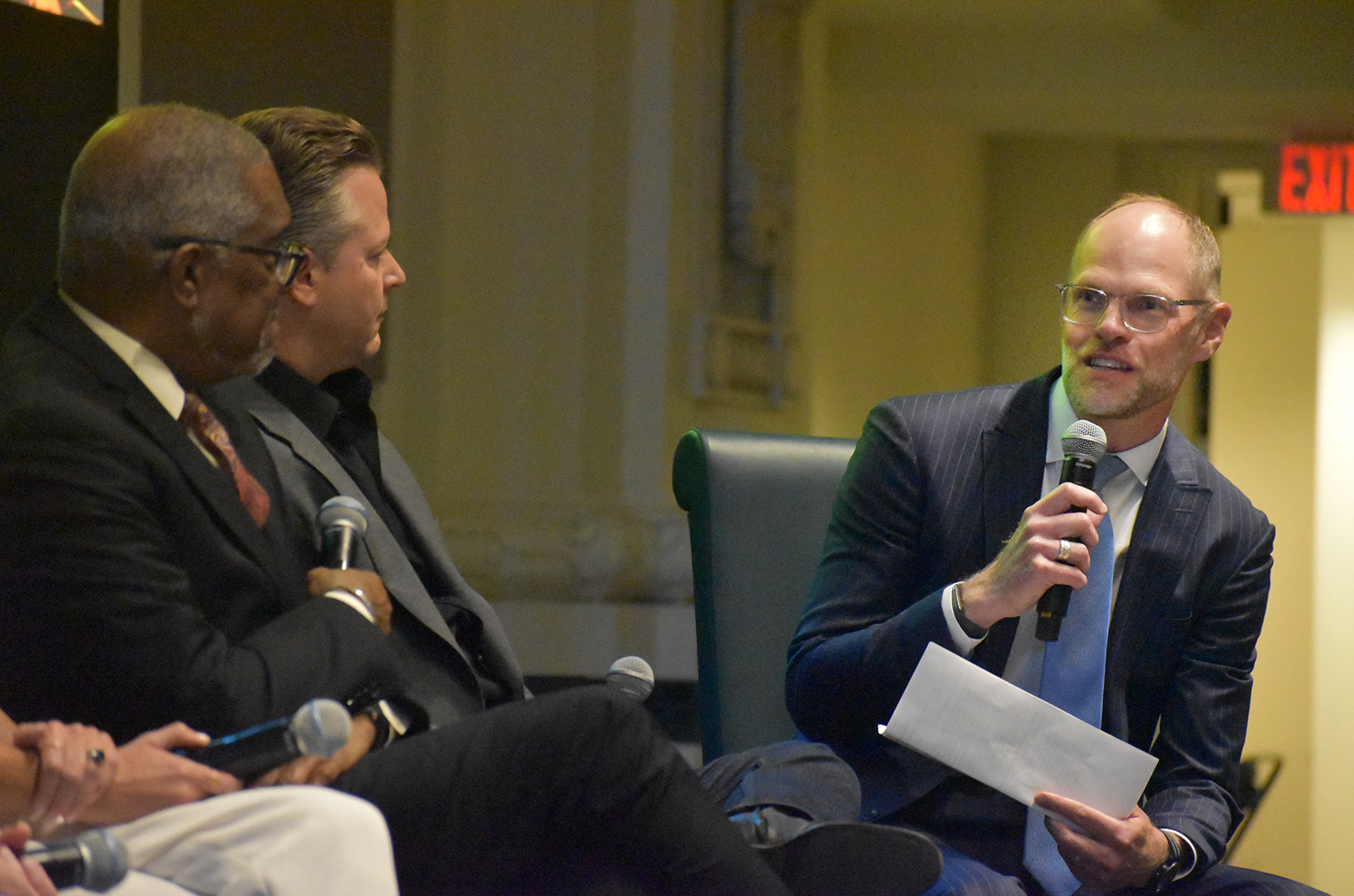Leonard Graham, president of Taliaferro & Browne, speaks about businesses helping fellow businesses during an entrepreneur panel hosted by the KC Chamber; photo by Taylor Wilmore, Startland News
