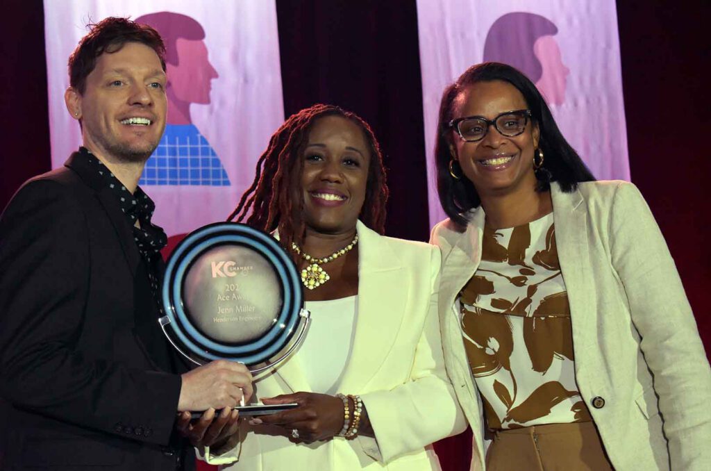 The 2024 Ace Award winners included: Anna Bazan-Munguia, director of community outreach of Big Brothers Big Sisters Kansas City, Kelly Hass, senior director of quality at Honeywell Federal Manufacturing & Technologies, and Jenn Miller, DE&I partner at Henderson Engineers.