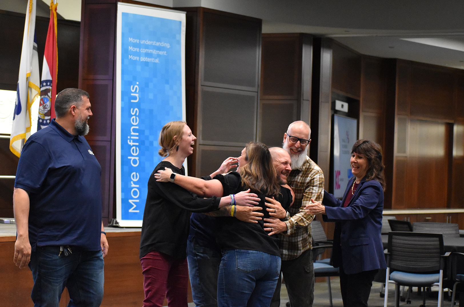 Leaders from Walz Tetrick Advertising pose with Vicky Kulikov, KC Chamber, the Top 10 announcement at UMB Bank during a KC Chamber Small Business Celebration reveal event; photo by Sherry and Ken Lumpkins, Blue Symphony, react to the Top 10 announcement at UMB Bank during a KC Chamber Small Business Celebration reveal event; photo by Nikki Overfelt Chifalu, Startland News