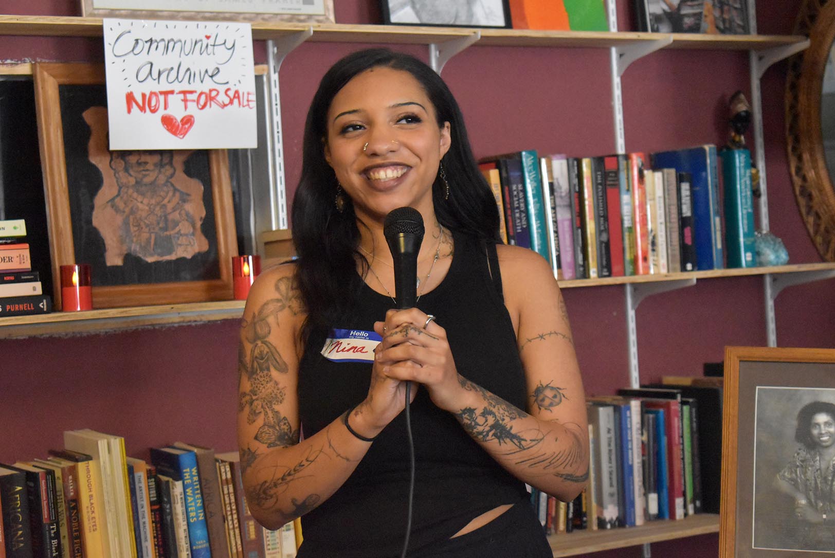 Nina Kerrs, a Mutual Aid organizer with The Kansas City Defender, speaks during a retirement event for Willa Robinson at Willa’s Books and Vinyl; photo by Taylor Wilmore, Startland News