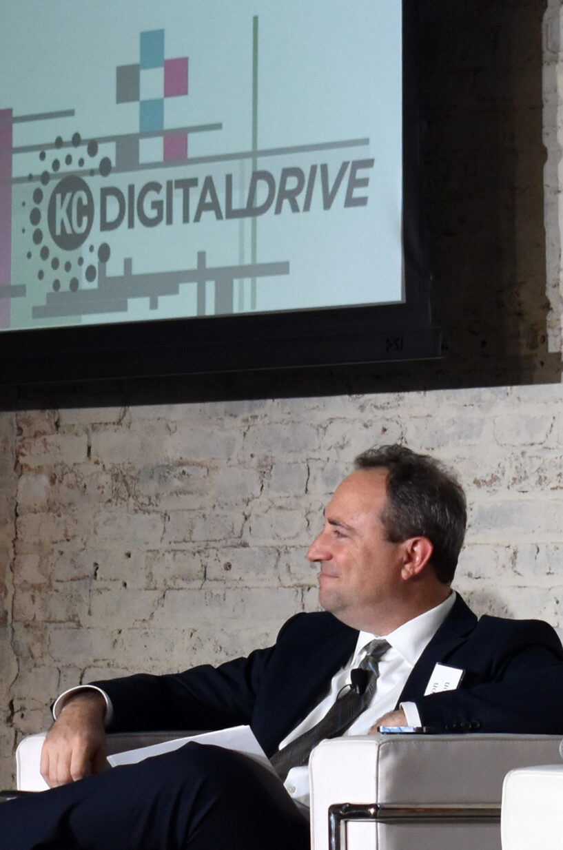 Aaron Deacon, KC Digital Drive, sits on stage during a 2022 event celebrating KC Digital Drive’s 10th anniversary; Photo by Channa Steinmetz, Startland News