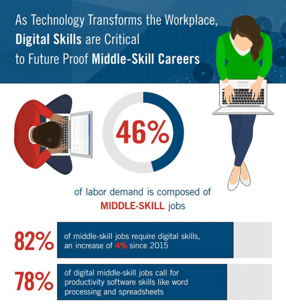 Over the past few years, we heard growing concern that those at the middle and lower end of the income spectrum were at an increasing technological disadvantage. Just 53 percent of adults with incomes less than $30,000 have broadband at home. Applying for even minimum-wage jobs often requires using the internet. Securing what’s considered a “living wage” job almost always requires possessing digital job skills, as even “baseline” digital skill jobs pay 17 percent more. So where does this put the millions of Americans that don’t have broadband at home, or the relevant computers and skills to utilize it?