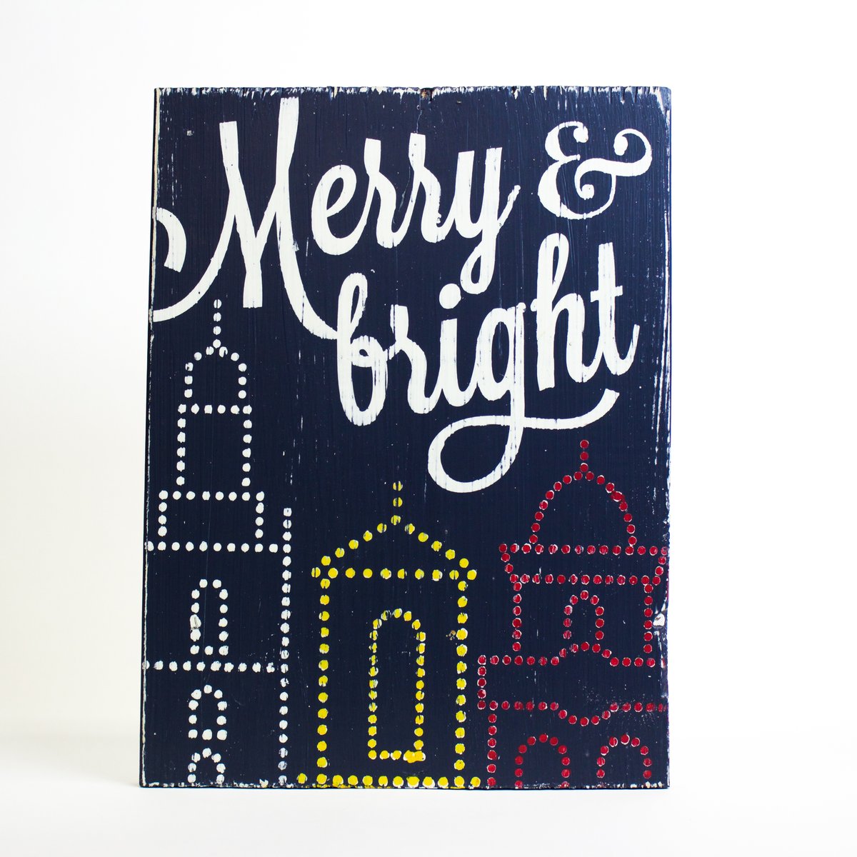 Hand crafted by Farmdog Studios, the Merry & Bright holiday sign sings Christmas in Kansas City.