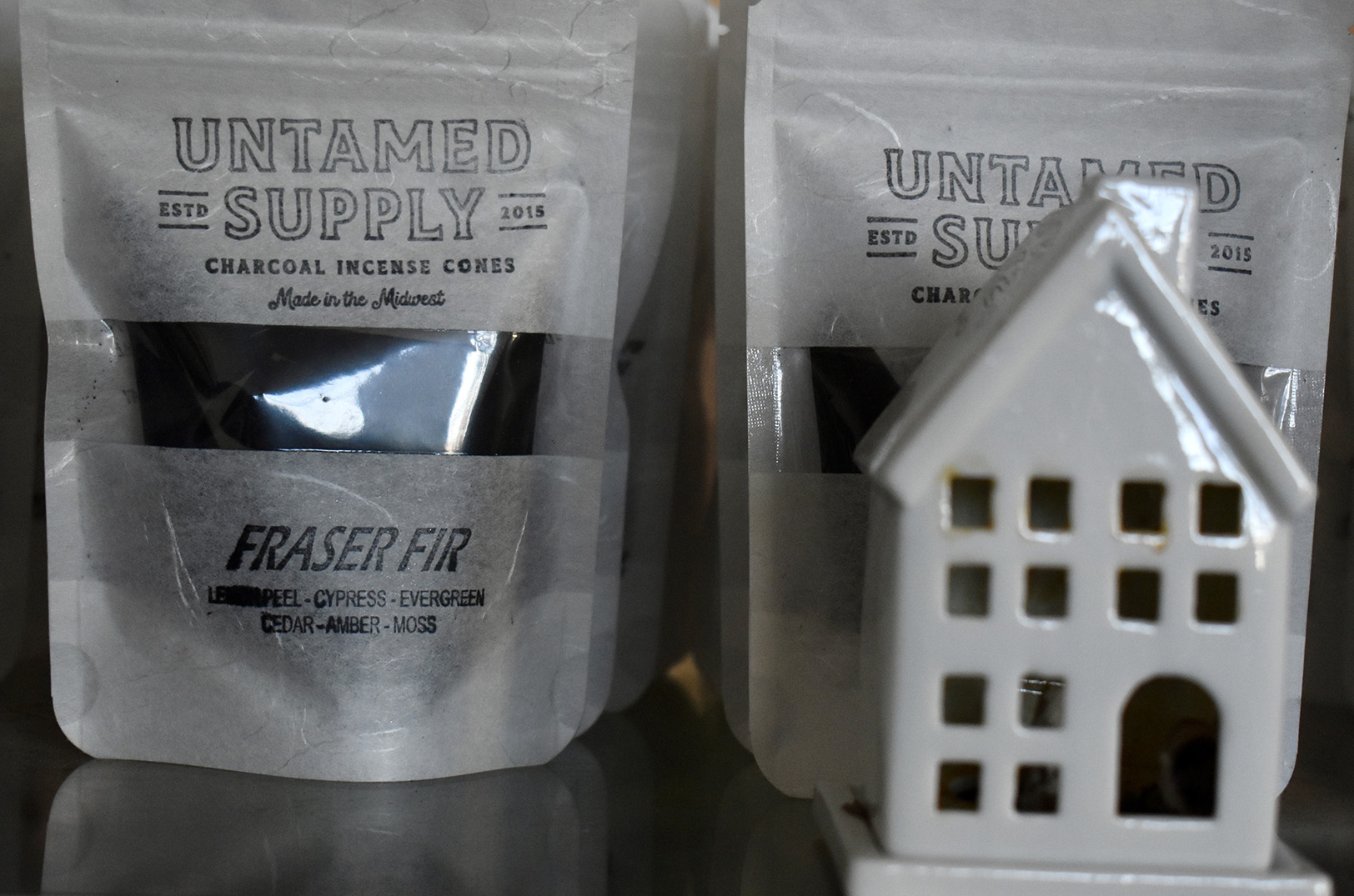 Untamed Supply charcoal incense cones at 12th Street Post; photo by Nikki Overfelt Chifalu, Startland News