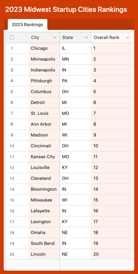 The comprehensive report explores how metropolitan areas across the Midwest are performing relative to each other based on startup activity, access to resources, and business climate.
