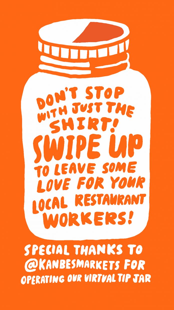 Those purchasing the shirt can give generally, which will be equally distributed among the registered restaurants, or choose individually which restaurant they would most like to support and ensure 100 percent goes to that choice, she added, noting the team also set up a virtual tip jar for any additional donations.