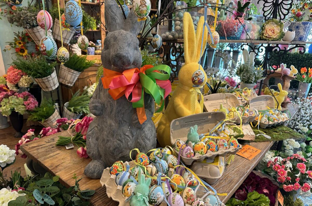 They placed orders for goods that are rolling out for spring: top-selling silk florals, along with lamps, checkered canisters, rugs and trays with scalloped edges, and many, many Easter bunnies, all “to add more charm to your home,” Zach said.