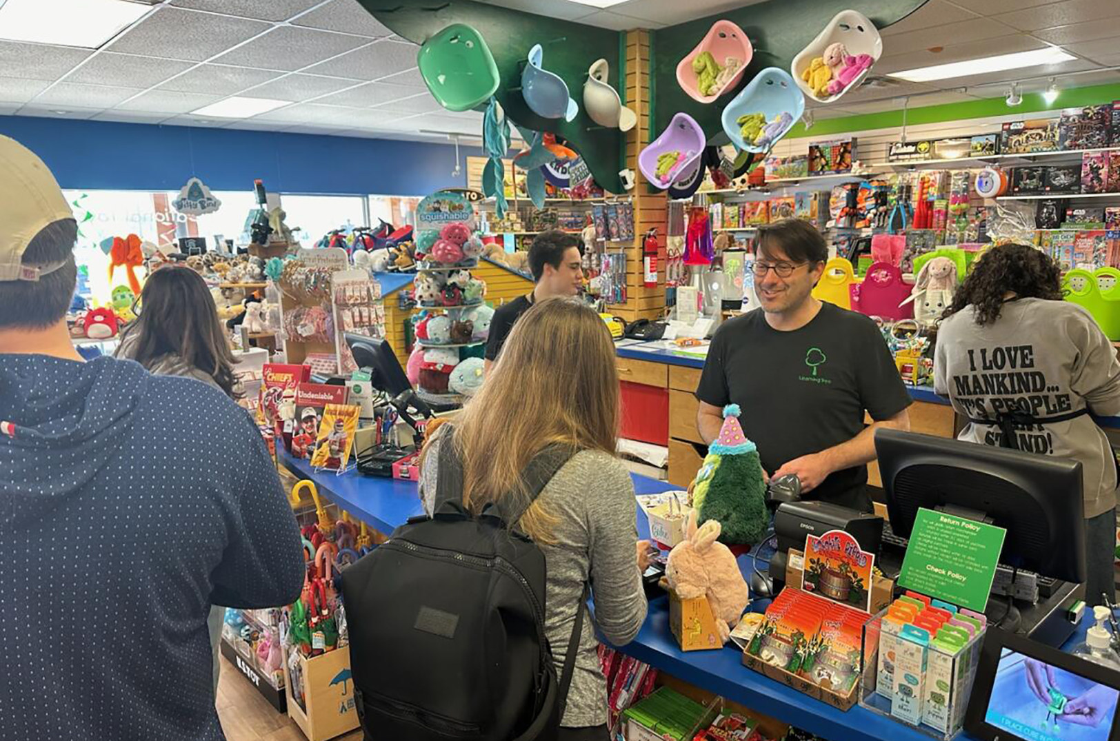 Alan Tipton waits on a slew of customers at The Learning Tree in Prairie Village; photo by Joyce Smith