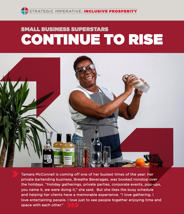 Click here to read how the Small Business Superstars effort plays into the KC Chamber’s strategic imperative on inclusive prosperity — through the eyes of entrepreneur Tamara McConnell and her private bartending business, Breathe Beverages.