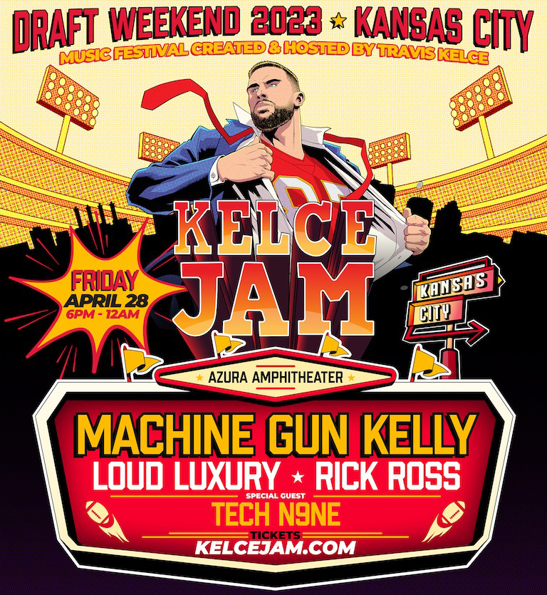 “The Super Bowl victory lap is not over yet,” Kelce said in a press release announcing the April 28 star-studded event. “KC, just wait to see what I have in store for you all with my inaugural Kelce Jam — draft weekend’s biggest event ever, featuring my homies Machine Gun Kelly, Rick Ross, Loud Luxury and Tech N9ne, some of KC’s best eats, awesome brand activations, and unmatched championship energy.”