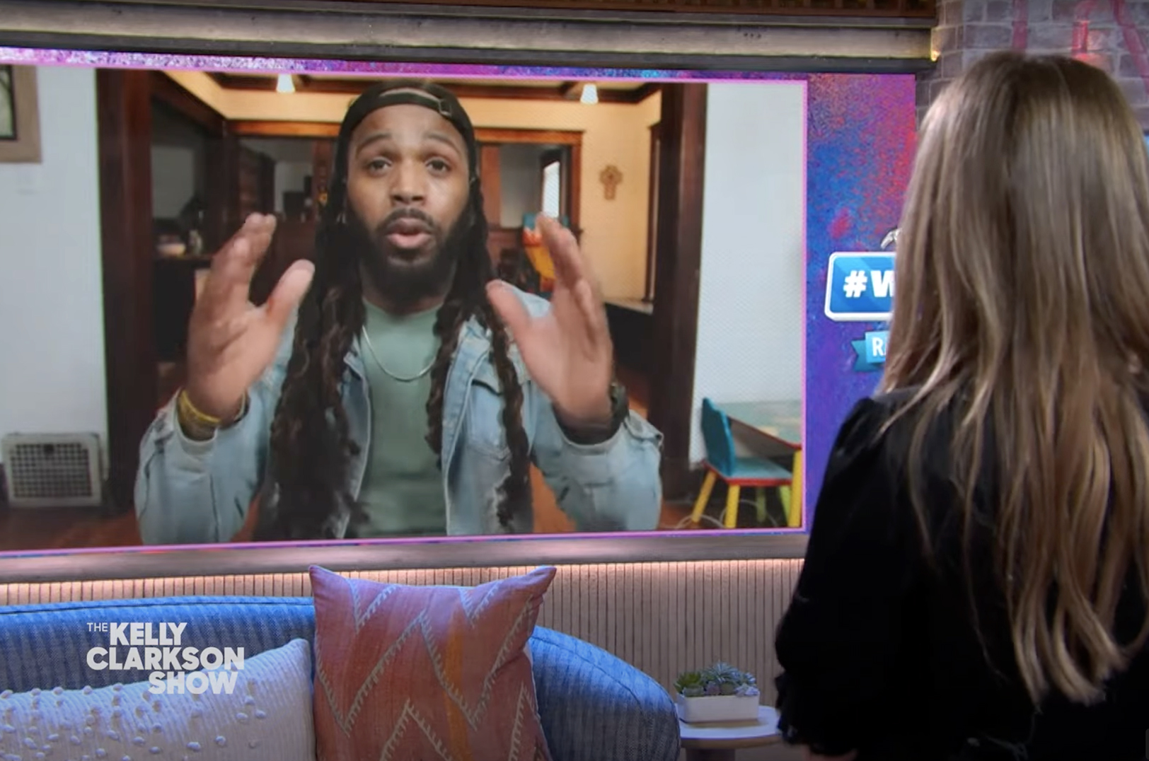 James Hogue details his nonprofit, Fathers Assisting Mothers, on an episode of the Kelly Clarkson Show; still courtesy of the Kelly Clarkson Show