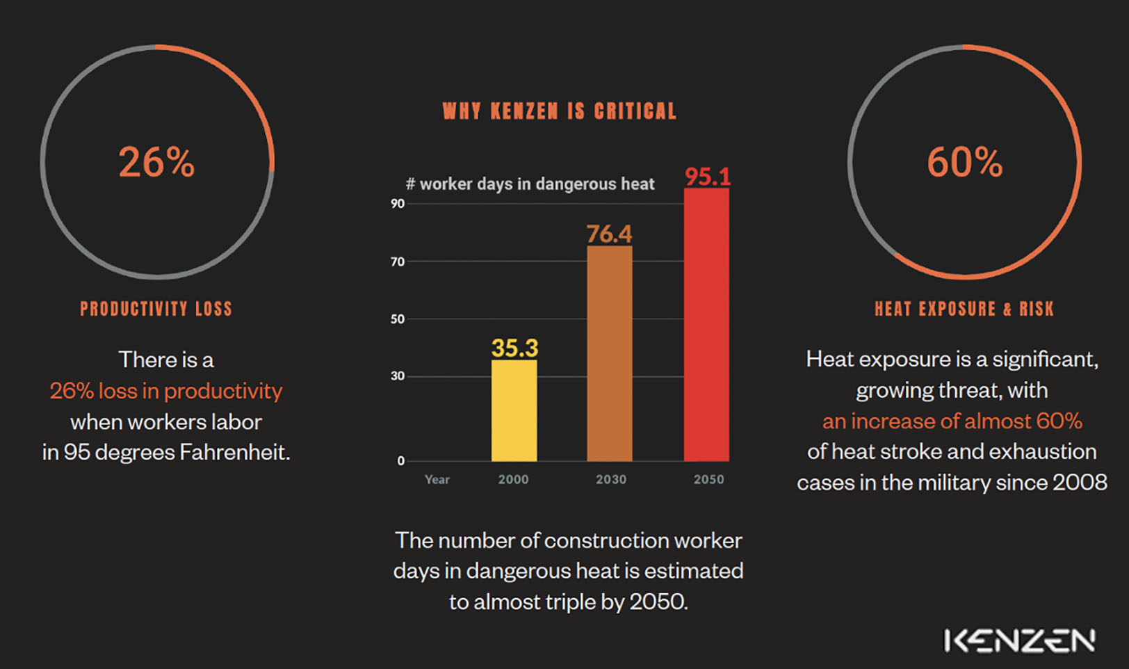 With its pivot, Kenzen identified a market in which millions of U.S. workers — including 180 million in construction alone — are exposed daily to hazardous heat, company data revealed, noting hazardous heat exposure is expected to triple by 2050.