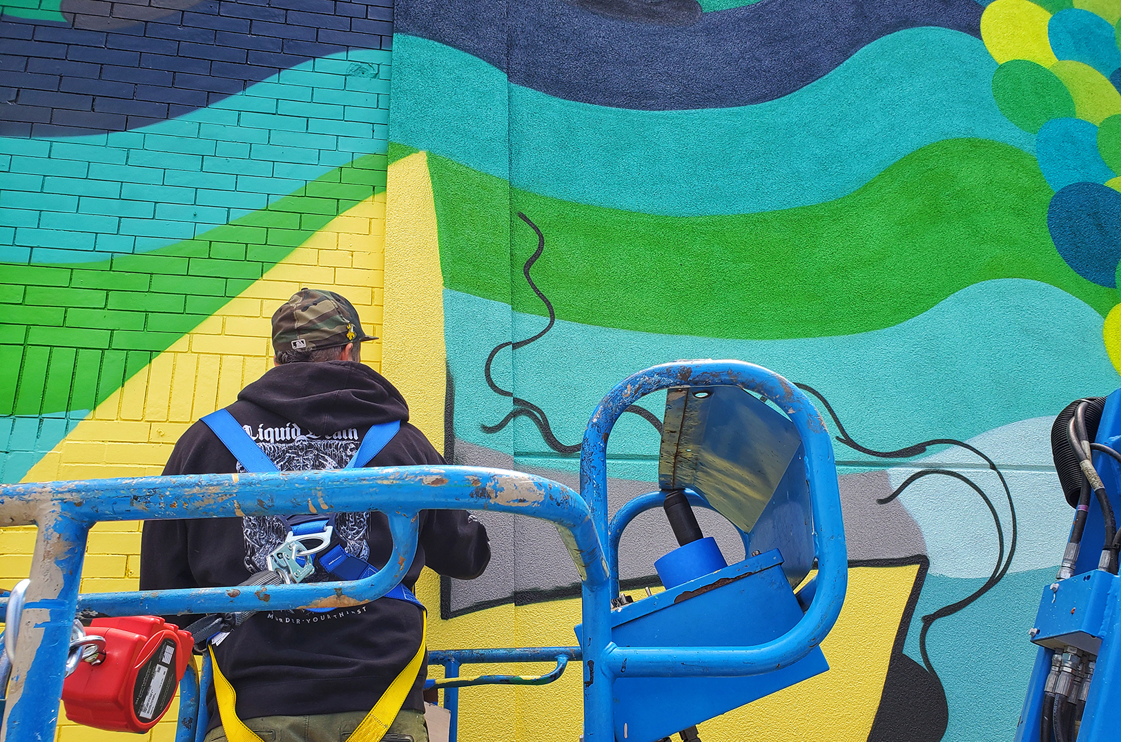 “You hear a lot in the industry about needing a lot of signage. Why put up a sign when you can have it blend in with the neighborhood?” he said. “The mural is the signage.”