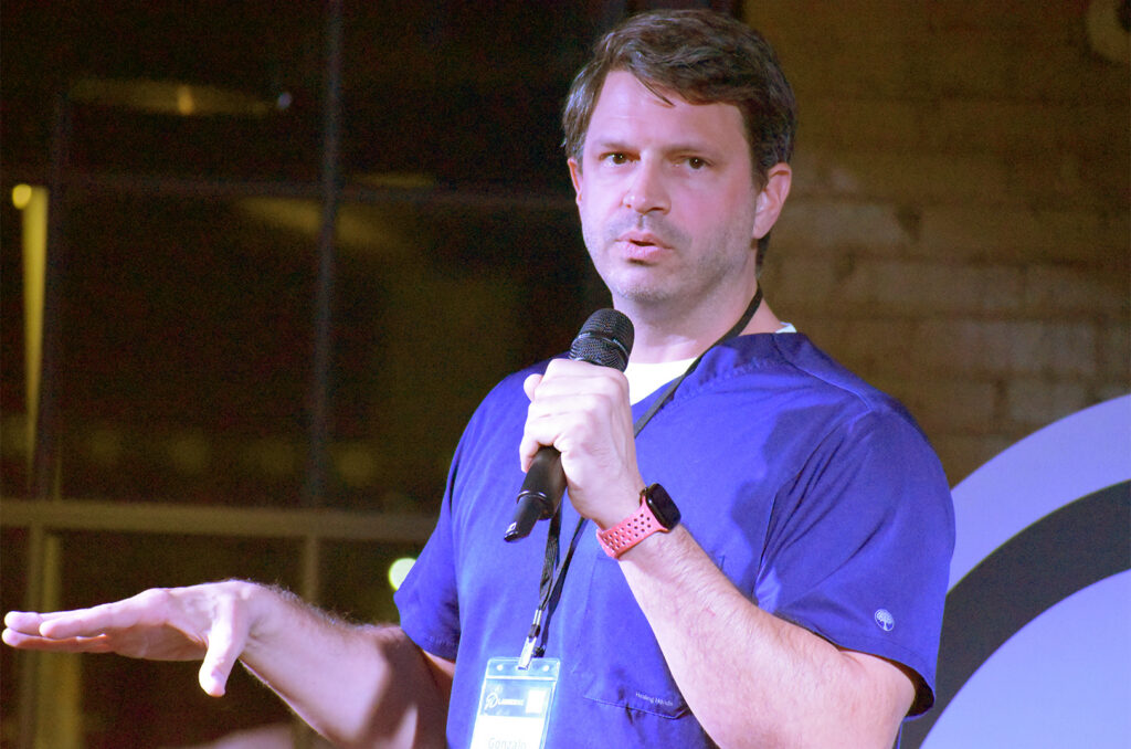 Gonzalo Erdozain, Scout, pitches during LaunchKC’s 2024 event; photo by Nikki Overfelt Chifalu, Startland News