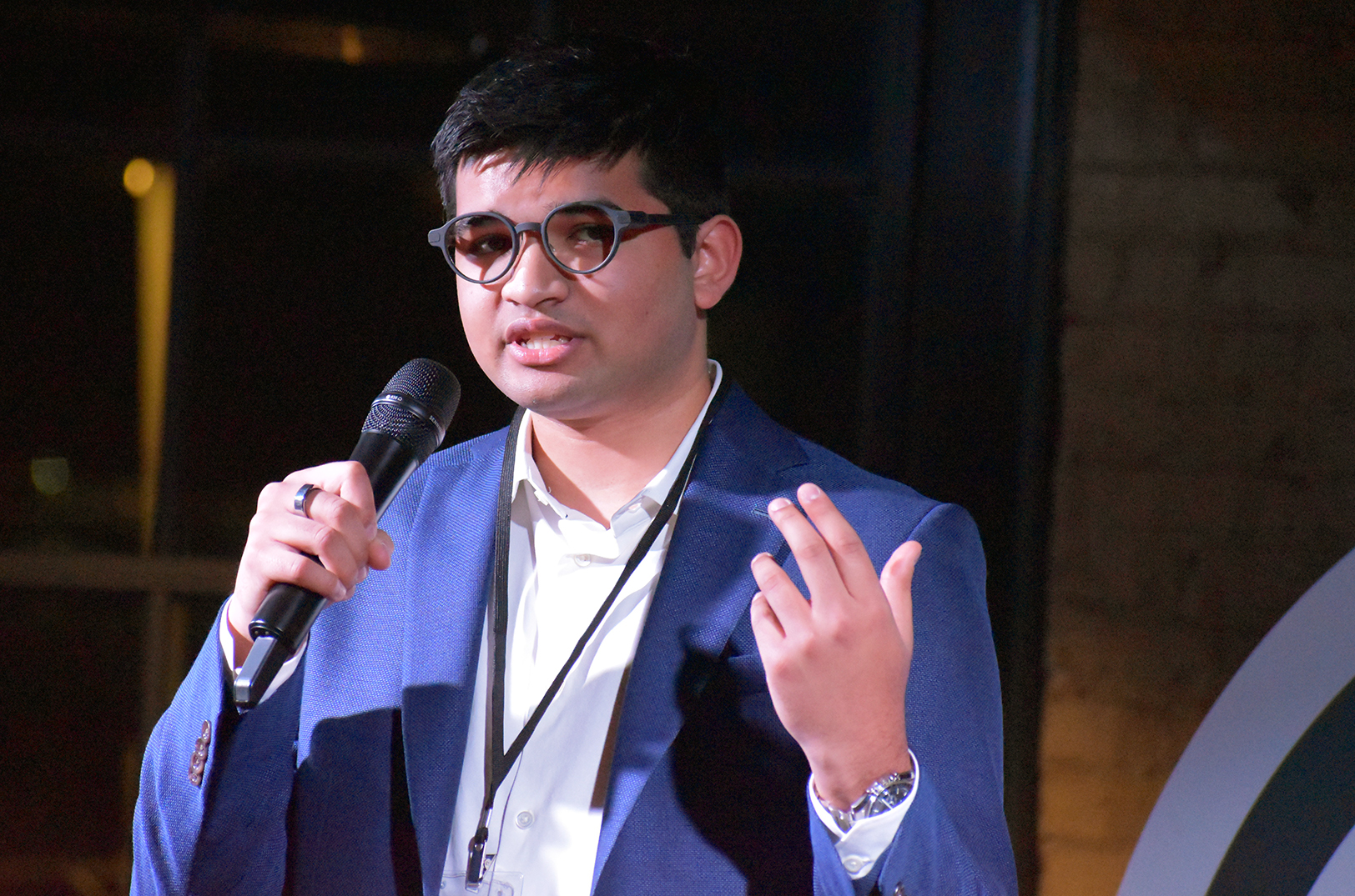 Jeffrey Annaraj, Cybership, pitches during LaunchKC’s 2024 event; photo by Nikki Overfelt Chifalu, Startland News