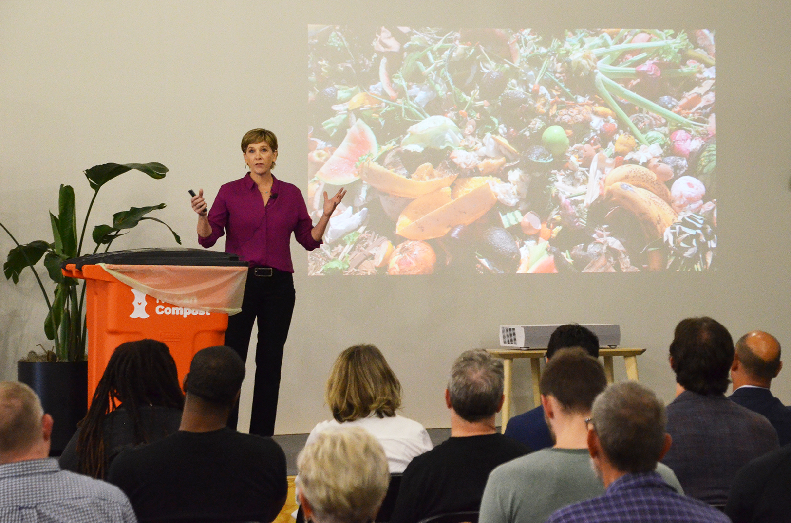 KC Can Compost provides orange organic waste bins in locations throughout the city so that people can easily dispose of food scraps that shouldn’t be left to decompose in landfills.