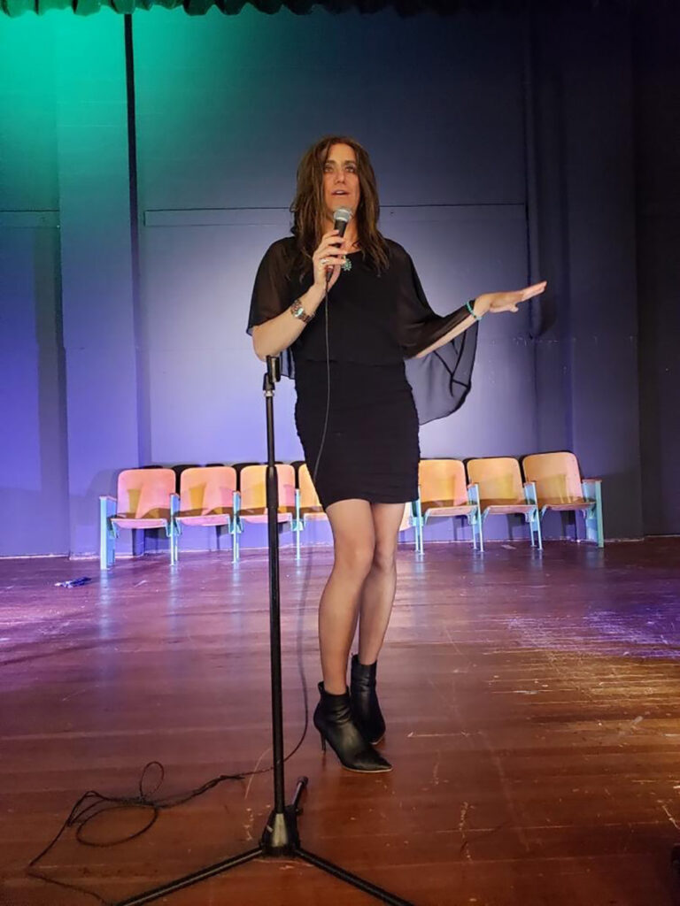 Ilan Salzberg practices a standup comedy routine in preparation for his/her debut at the Leavenworth Local Hotel’s one-year anniversary comedy show