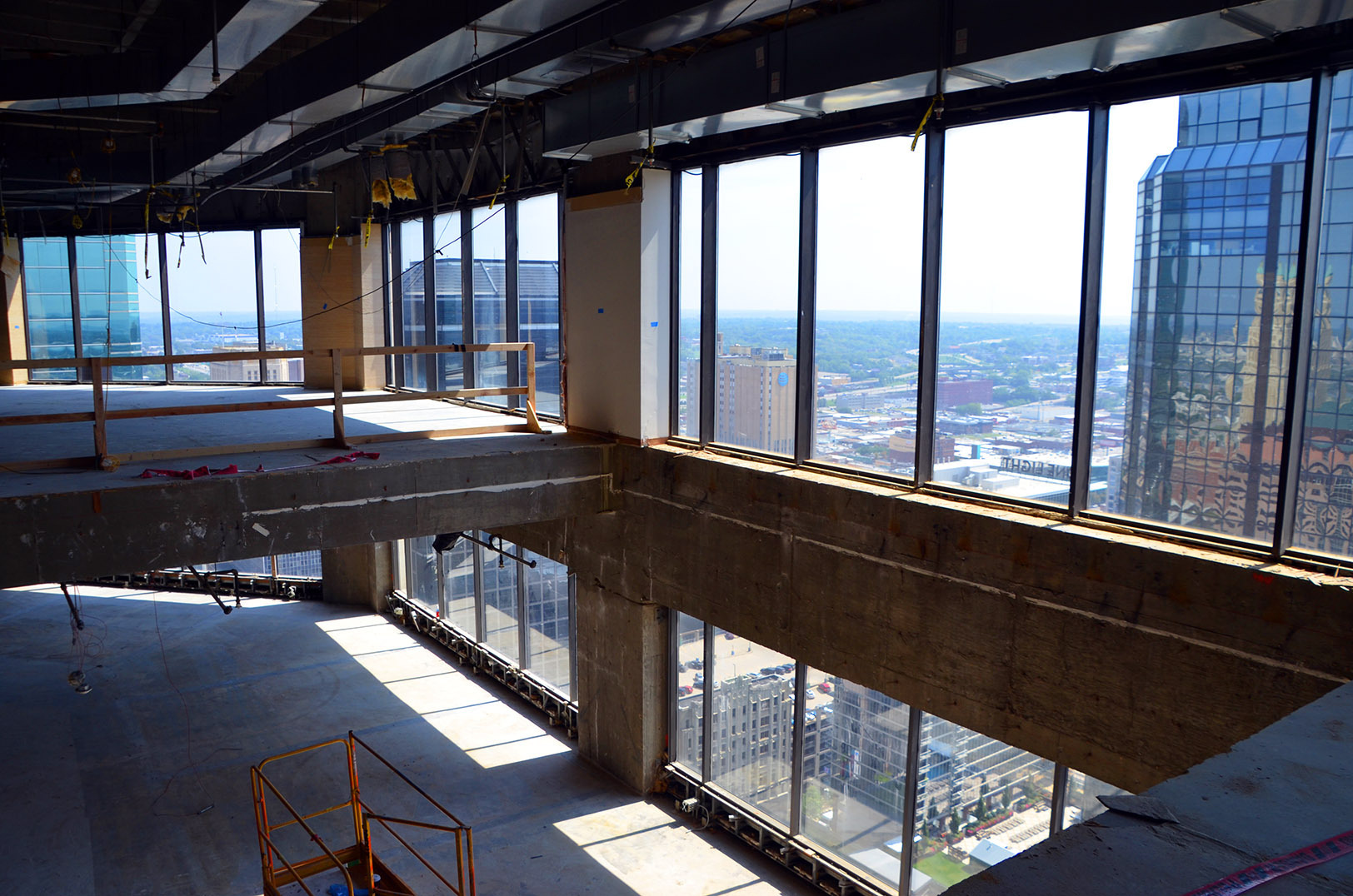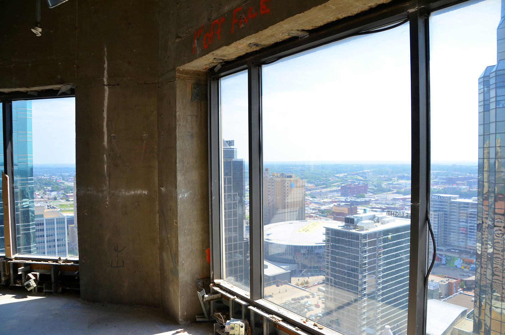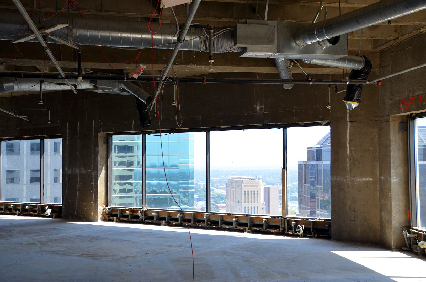 Beneath the 30-story former City Center Square building’s dated, wood-paneled walls and dust-drenched carpets lie polished concrete floors and pillars, exposed beams and floor-to-ceiling windows overlooking breathtaking views of the city’s skyline. More than an aesthetic, the blank-slate features signal the building’s modern rebirth and serve as a symbol of the redevelopment team’s commitment to severing ties with archaic approaches to corporate real estate, said Schaffer.