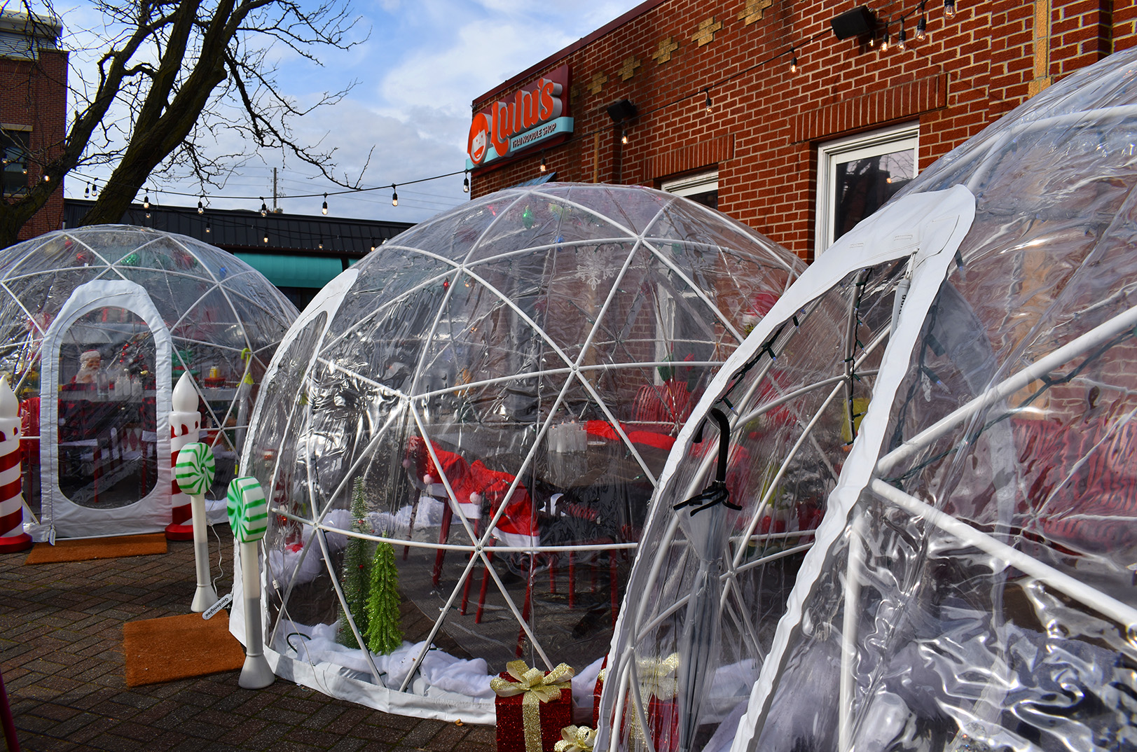 Holiday igloos outside Lulu’s Thai Noodle Shop in Overland Park; photo by Taylor Wilmore, Startland News