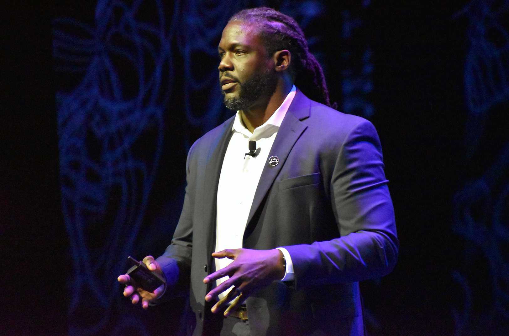 Marcus Whitney, Jumpstart Health Investors, gives a keynote address during BioNexus KC’s Disrupt event at the Midland theater; photo by Taylor Wilmore, Startland News