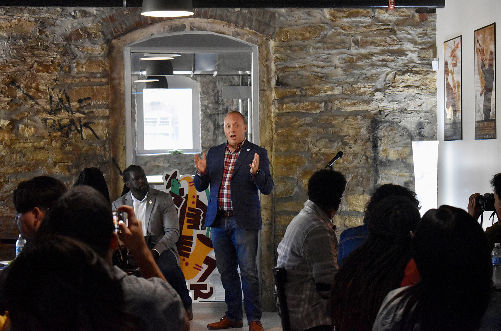 Marcus Whitney, Jumpstart Health Investors, speaks at Vine Street Brewing during BioNexus KC’s luncheon on investing in Black and Brown innovators; photo by Nikki Overfelt Chifalu, Startland News