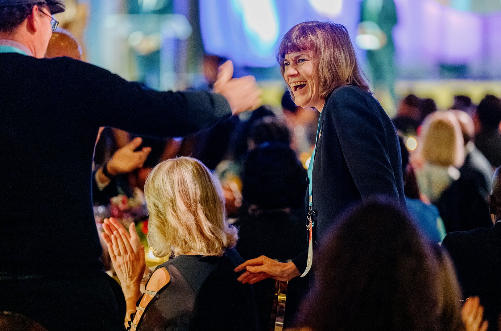 Maria Meyers, founder of SourceLink, is announced as winner of the Ecosystem Champion Award at the Global Entrepreneurship Conference in Indianapolis; photo by Sean Molin