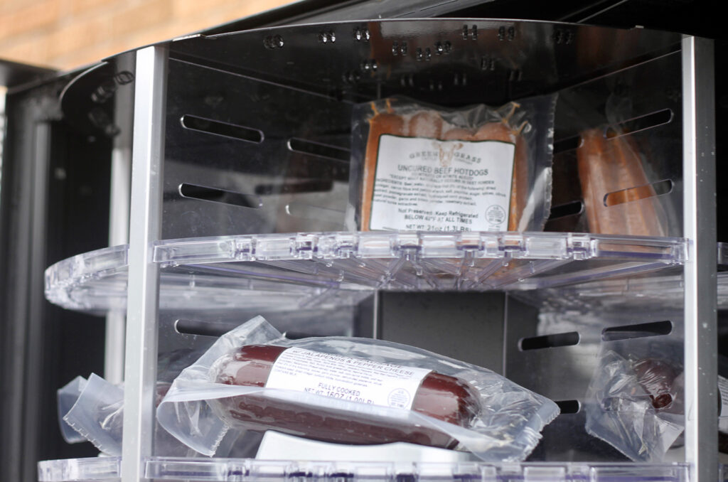 Haer plans to stock the vending machine according to consumer demand, he said. To start, he’s filled it with the family’s all-beef hotdogs, bacon cheeseburger bratwursts, jalapeno cheddar summer sausage, boneless ribeyes, KC strips, center-cut sirloin medallions and strips, and tenderloin filets.