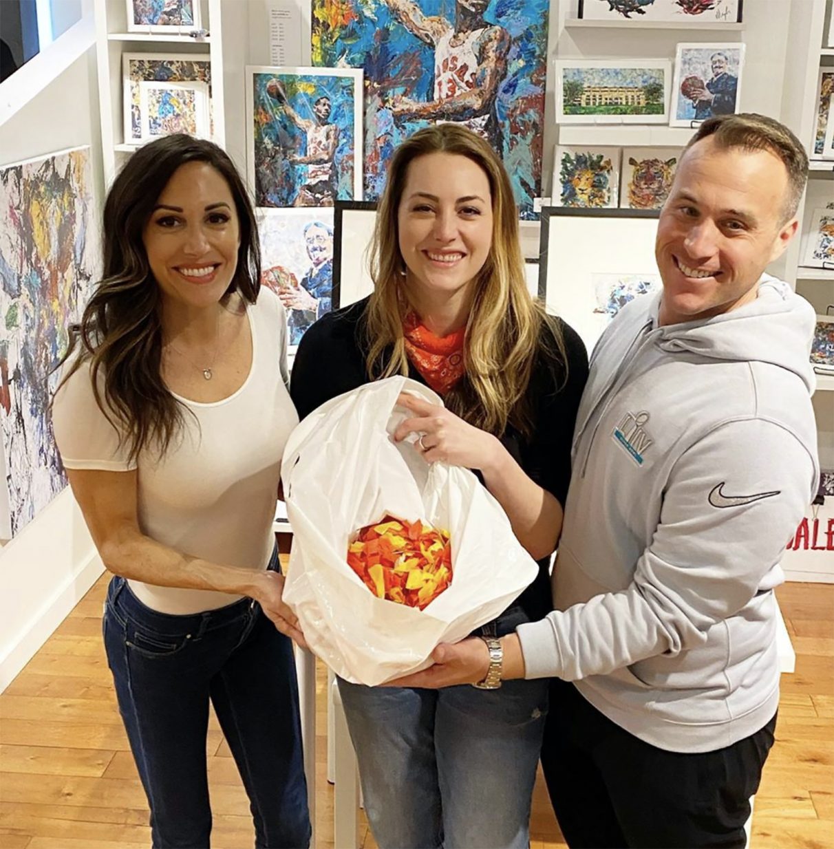A simple ask on social media put Megh in touch with the Chiefs’ groundskeeper, Ryan Toma, who was present at the game and was shortly able to hand over an entire bag of the red and gold confetti — still smelling of wet grass from the Miami field where Kansas City defeated the San Francisco 49ers, she said.