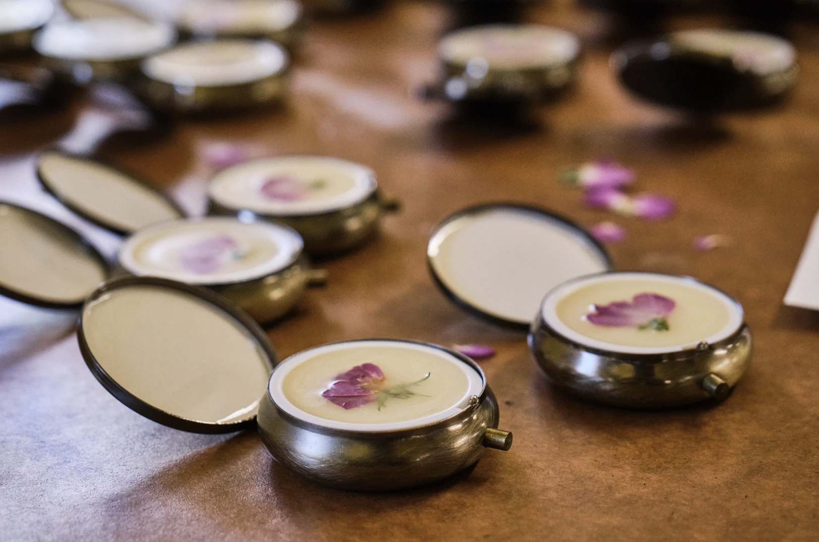 Employees in “Beeswaxland,” in the lower level of the barn, came up with a new solid perfume scent called “As You Wish” and described as a juicy berry blossom, light and sweet. The staff collaborated on the label, name and what pressed flower to put inside.