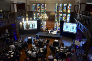 An audience of investors, startup founders, ecosystem builders and champions listens to KCMO Mayor Quinton Lucas as he addresses Mid x Midwest; photo by Nikki Overfelt Chifalu