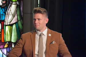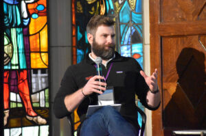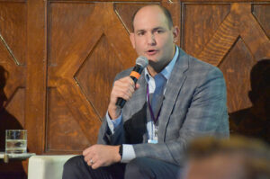 Daniel Kennedy, BioNexus KC, speaks during a Mid x Midwest panel conversation; photo by Taylor Wilmore, Startland News