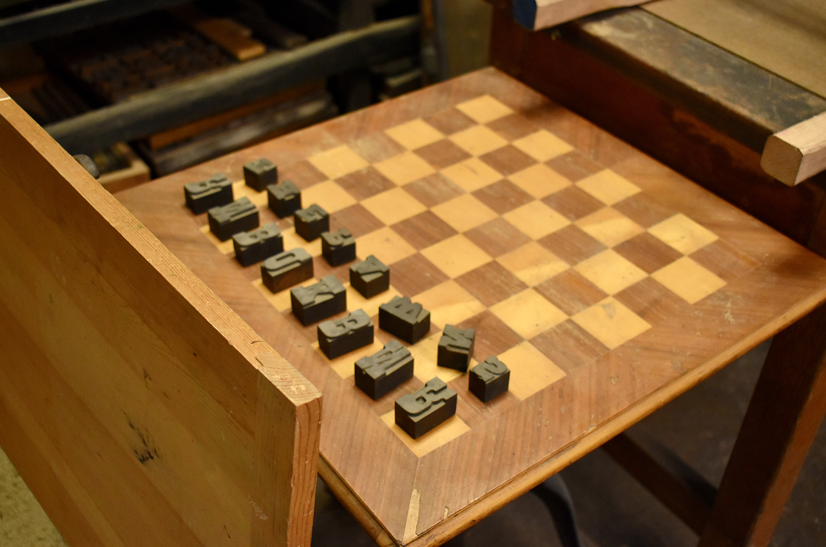 Letters from an older press sit at Greenhouse Print Space; photo by Nikki Overfelt Chifalu, Startland News