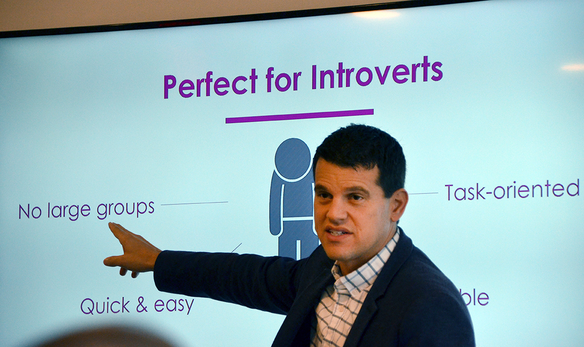 “Extroverts are energized by crowds, parties, networking events, things like that. Introverts are drained by them,” he said. “And that’s exactly how I felt.”