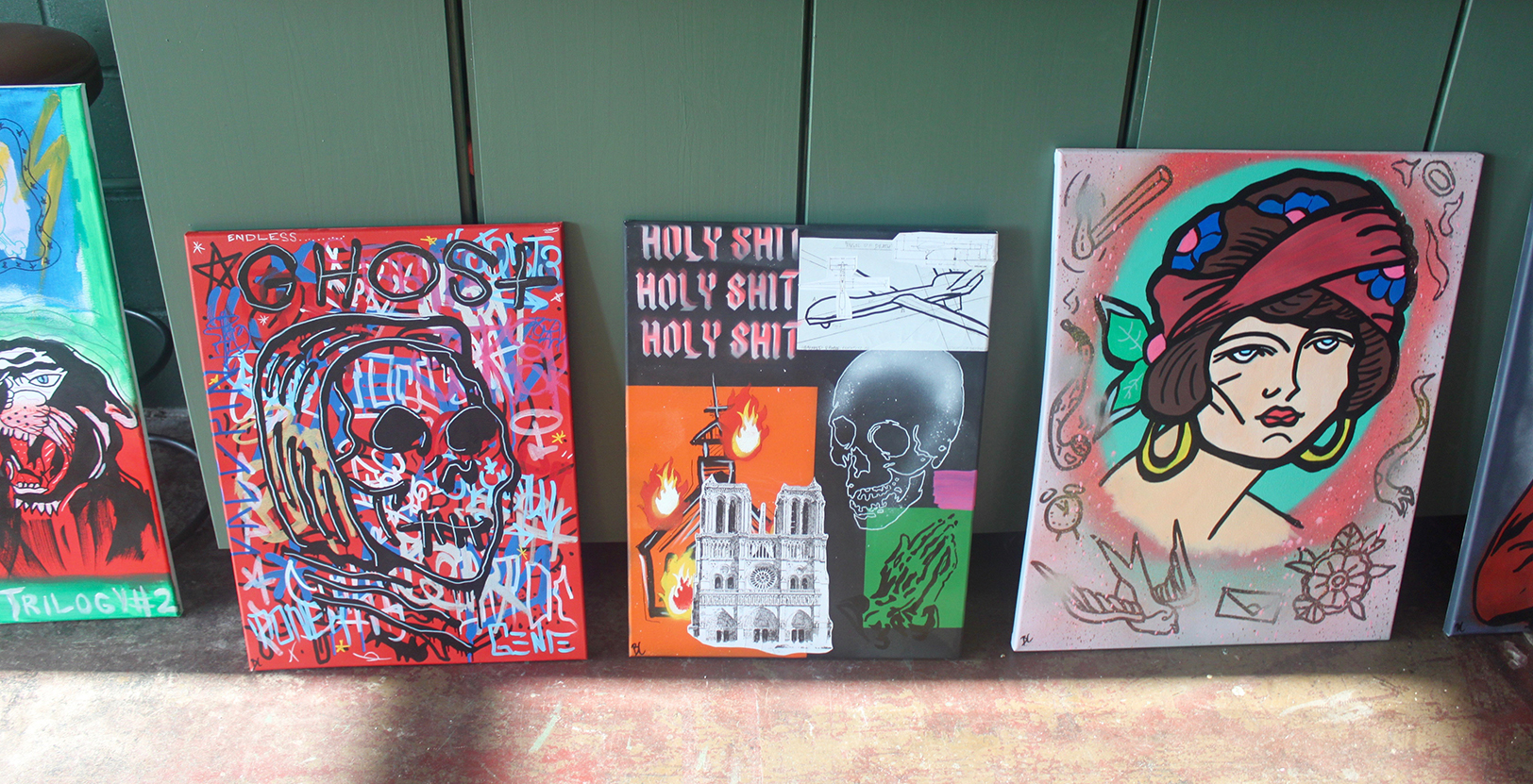 Crawford always loved to paint, draw, and doodle, but some of his first art was stencil work, he said. He would print images off the family computer and use them to make a stencil with cardboard and an X-Acto knife.