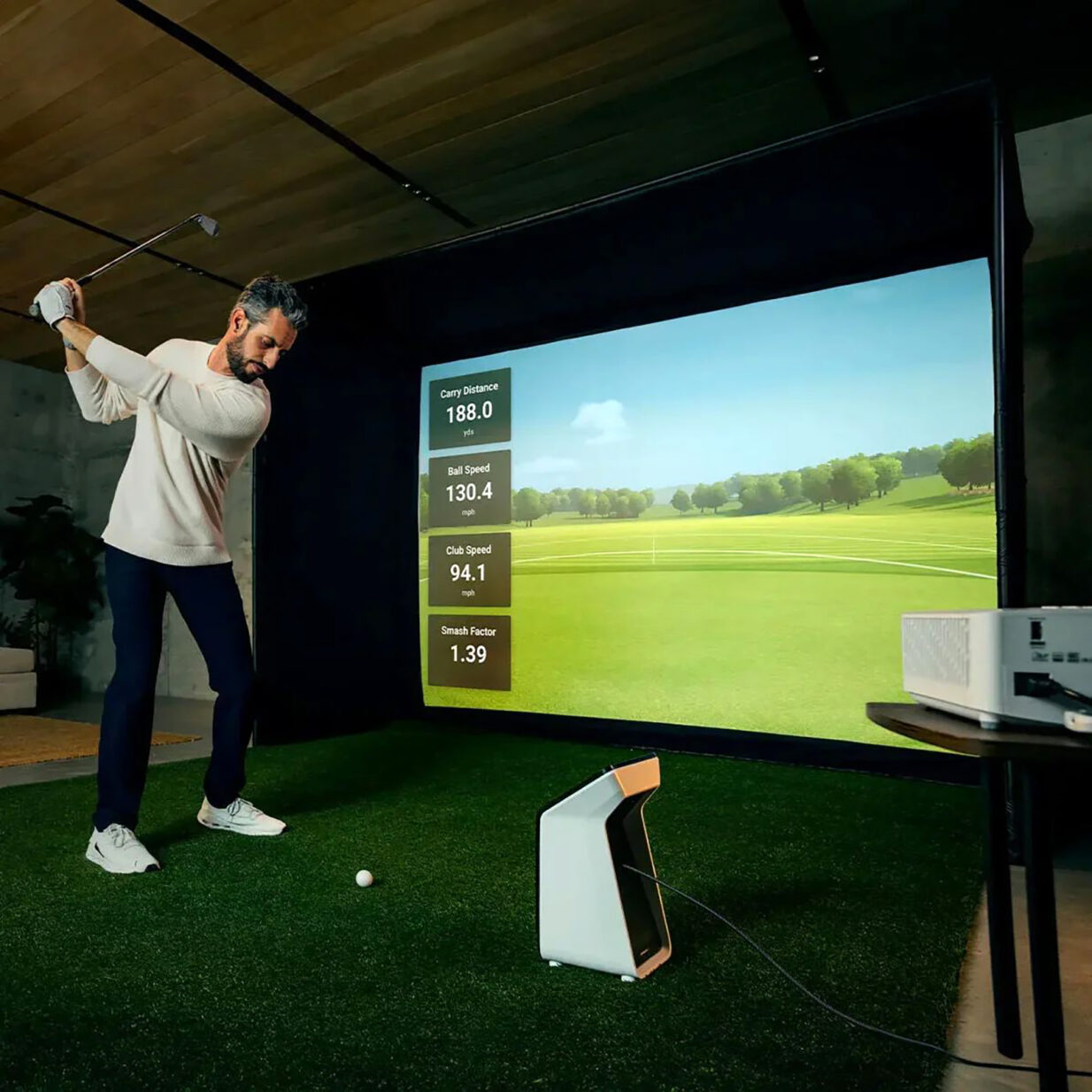 A golfer at GolfTRK uses Garmin’s Approach R50 device with integration to the Noonan mobile app; photo courtesy of Noonan
