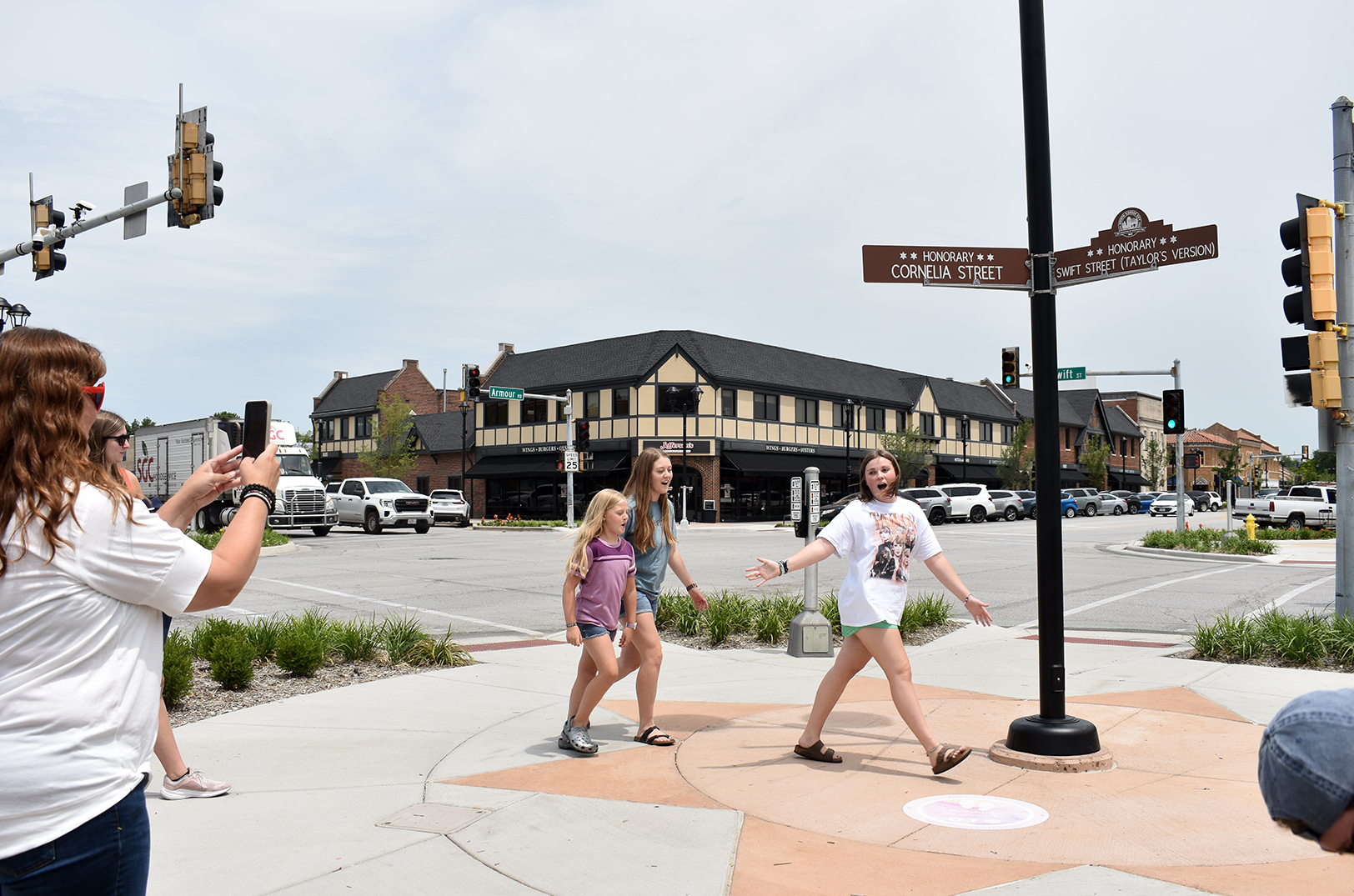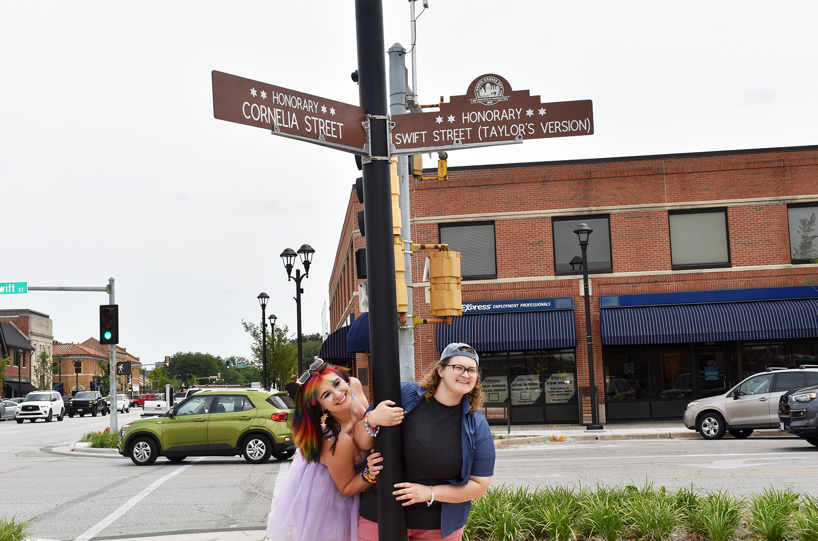 The street lights are pointing in an arrowhead, leading Taylor Swift fans to North Kansas City where they can walk the iconic “Cornelia Street.”