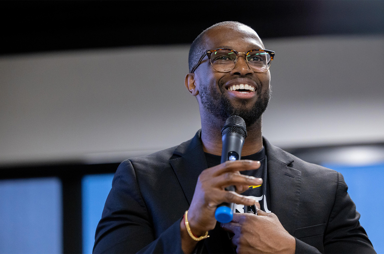 Michael Odupitan, Omni Circle, speaks during a Topeka Startup Community launch event at Omni Circle in Topeka; photo courtesy of Omni Circle