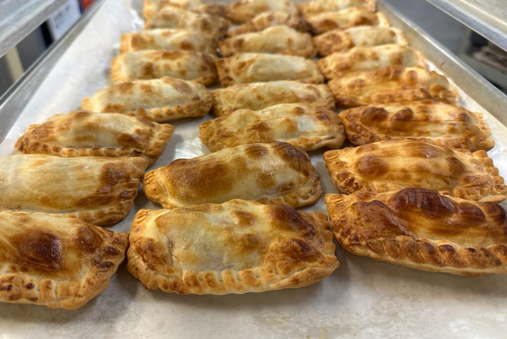 Empanadas — She typically makes them with a vegan flour (rather than corn), and offers eight choices: beef, spicy beef, ham and cheese, chicken, vegan veggie, fugazzetta (onion and cheese), apple, and breakfast (eggs, bacon and cheese).