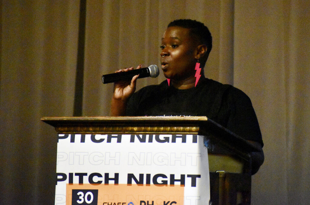 Michelay Green pitches during the Porter House KC’s Pitch Night event; photo by Taylor Wilmore, Startland News