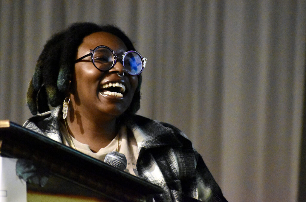Keisha Jordan pitches during the Porter House KC’s Pitch Night event; photo by Nikki Overfelt Chifalu, Startland News