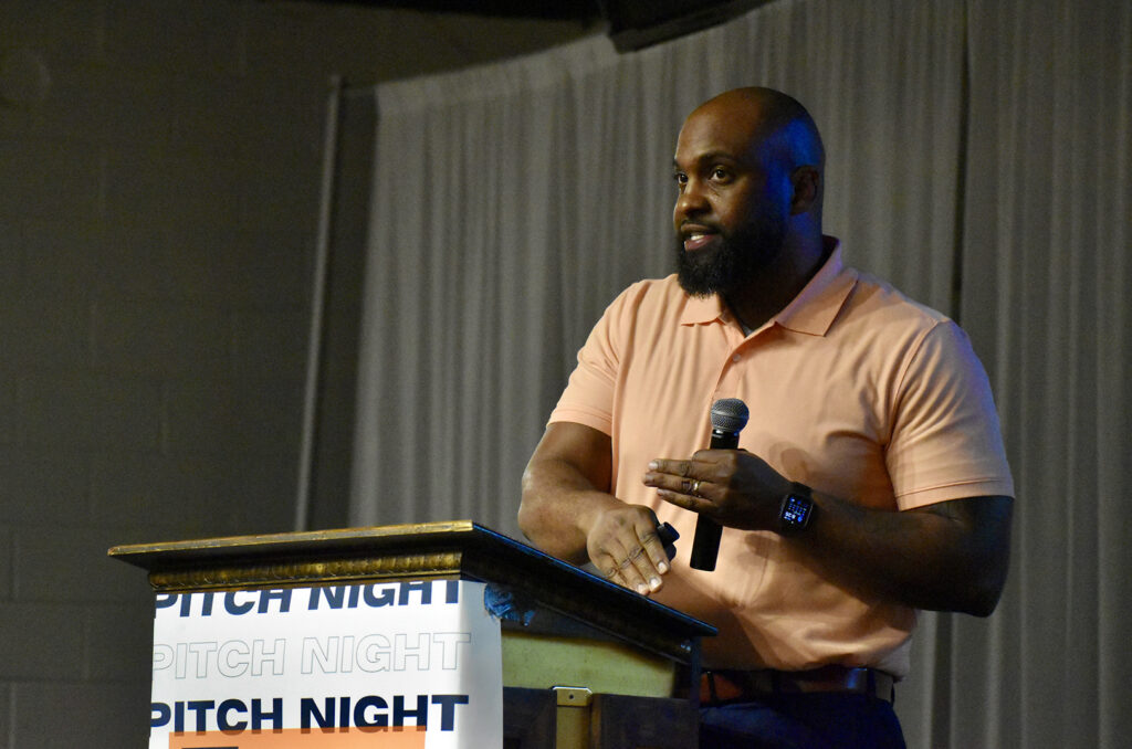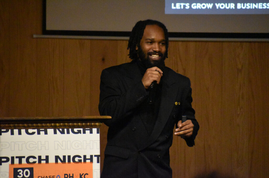 Deaunte Thomas pitches during the Porter House KC’s Pitch Night event; photo by Taylor Wilmore, Startland News