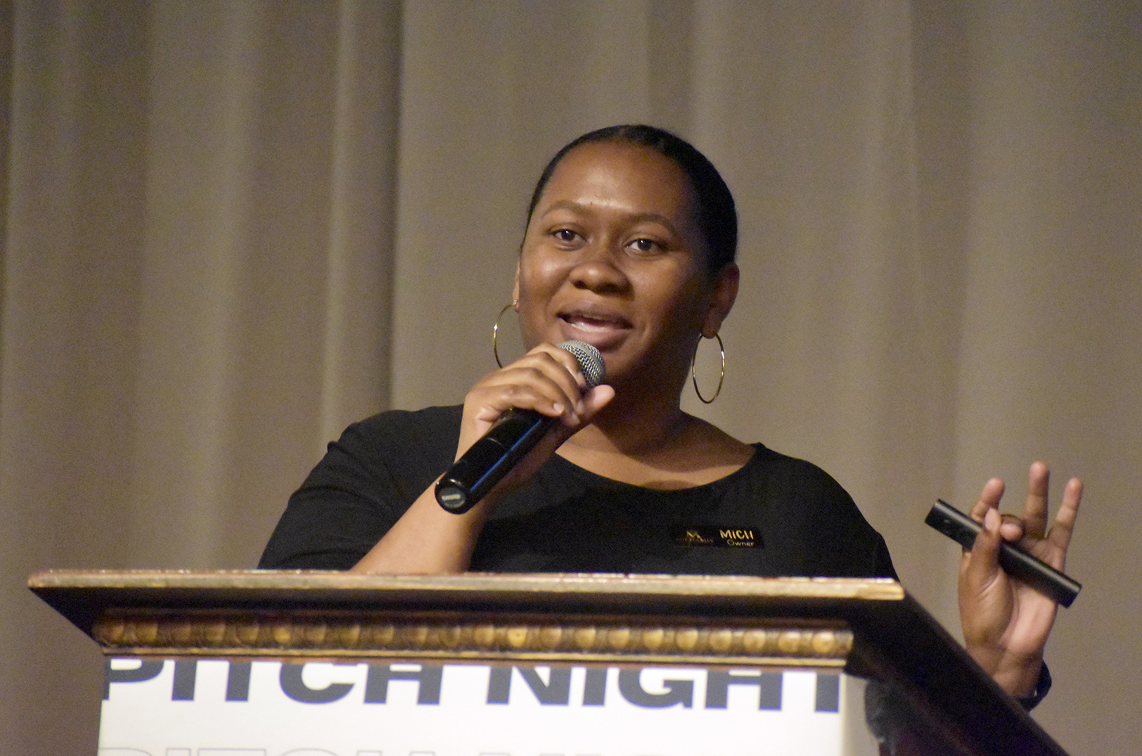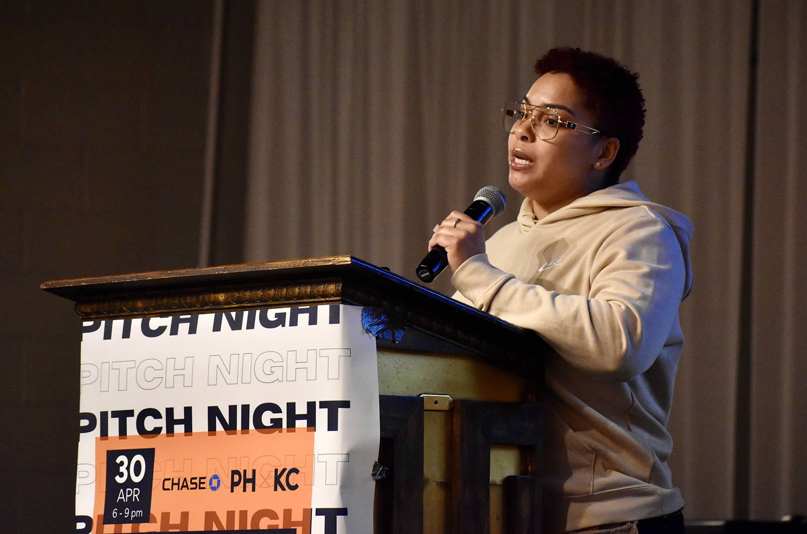 Michelay Green pitches during the Porter House KC’s Pitch Night event; photo by Taylor Wilmore, Startland News