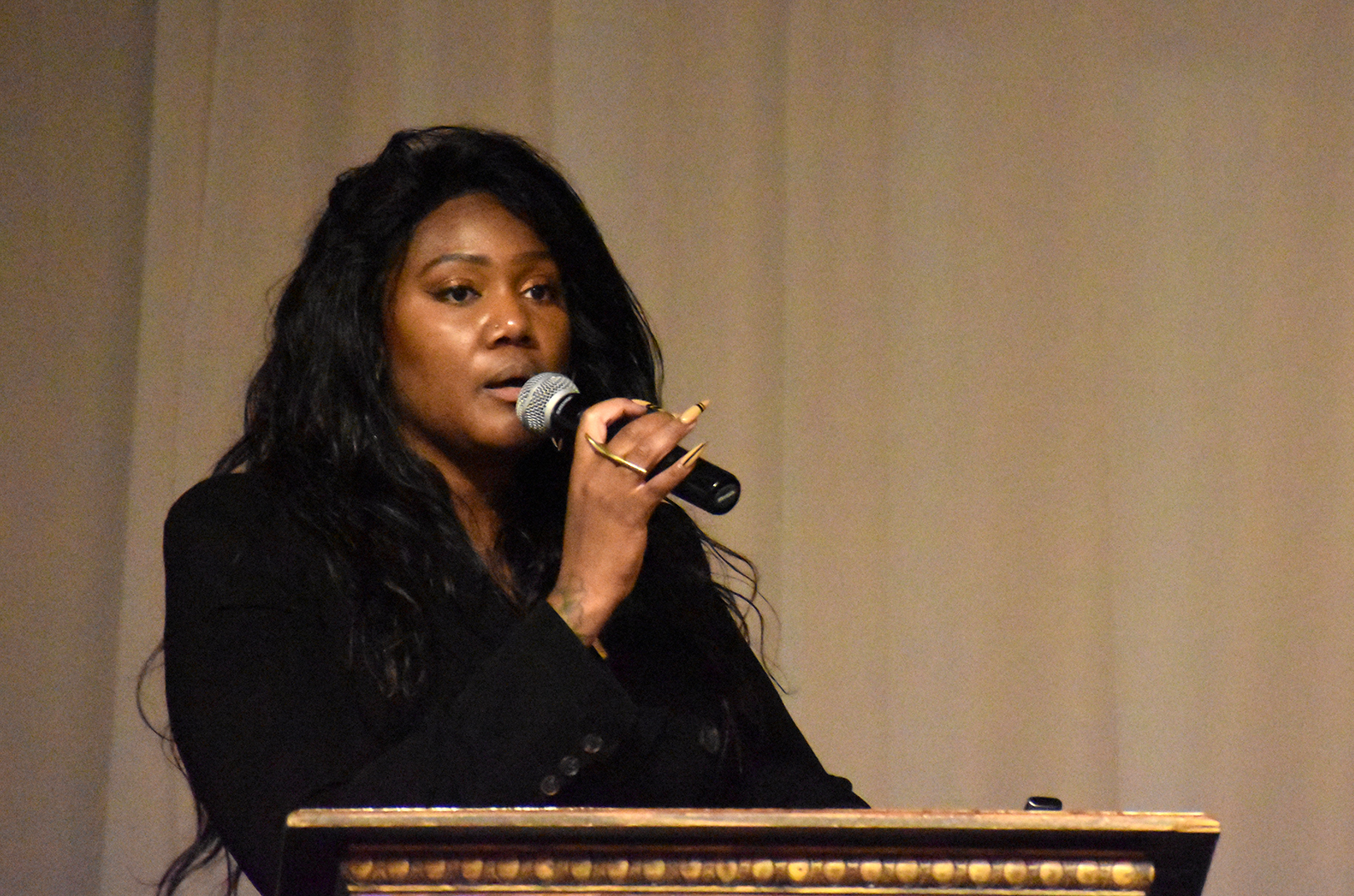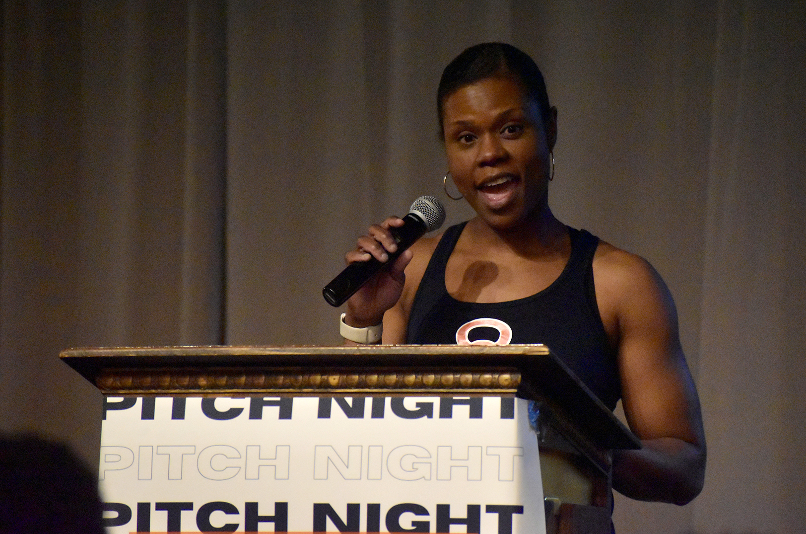 Keisha Jordan pitches during the Porter House KC’s Pitch Night event; photo by Nikki Overfelt Chifalu, Startland News