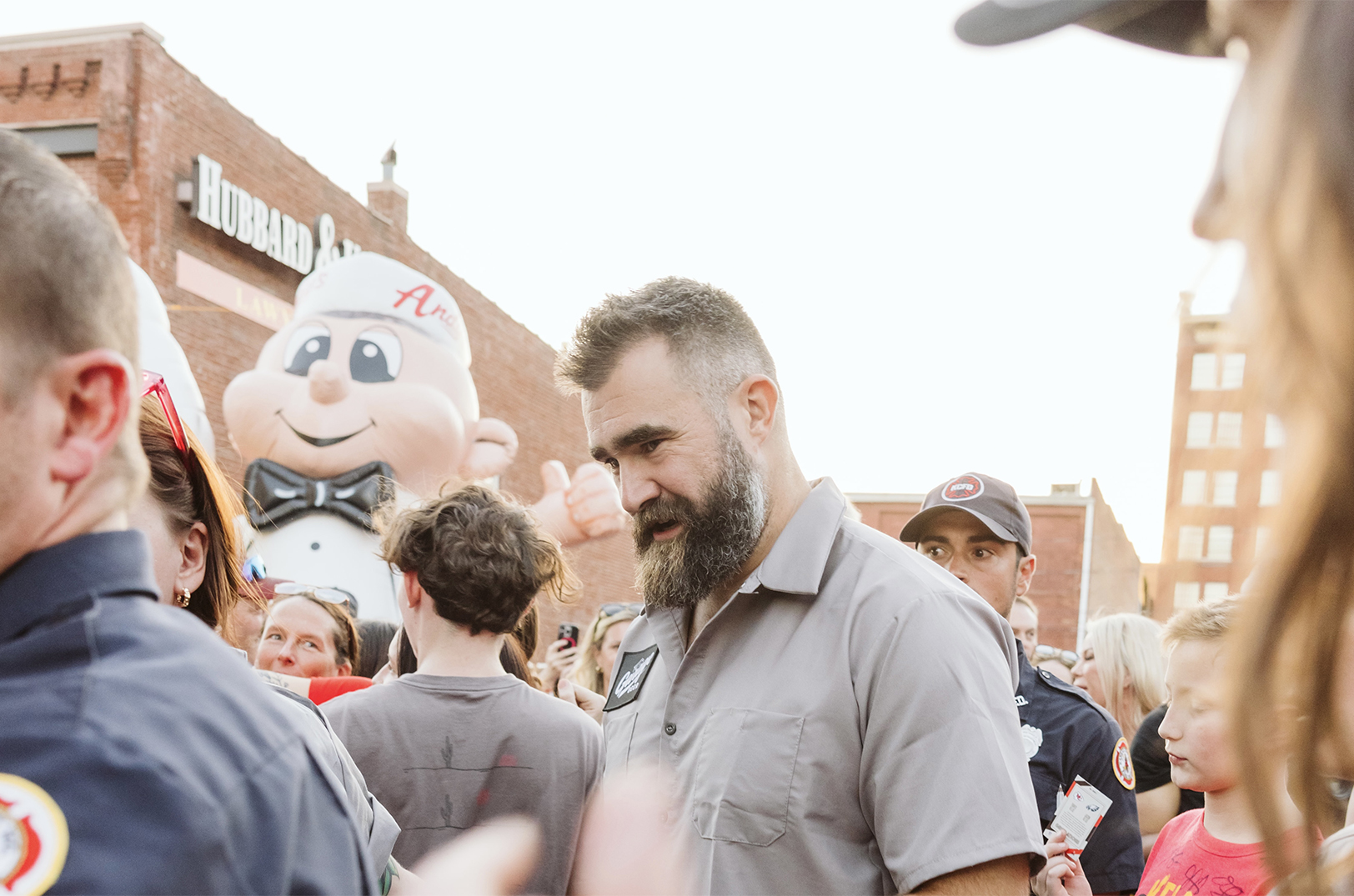 Jason Kelce, brother of Travis Kelce, makes his way through the crowd at the Kelce Car Jam; photo by Adri Guyer, courtesy of Platinum XP