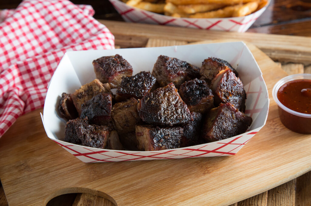 That includes ribs, burnt ends, pulled pork, brisket, smoked Italian sausage, smoked wings, smoked corned beef, Prime French Dip (shaved smoked Prime rib topped with Swiss on a toasted hoagie with a side of smokey Au Jus), and the Slaw Dog (all-beef hot dog topped with pulled pork and Buffalo coleslaw).