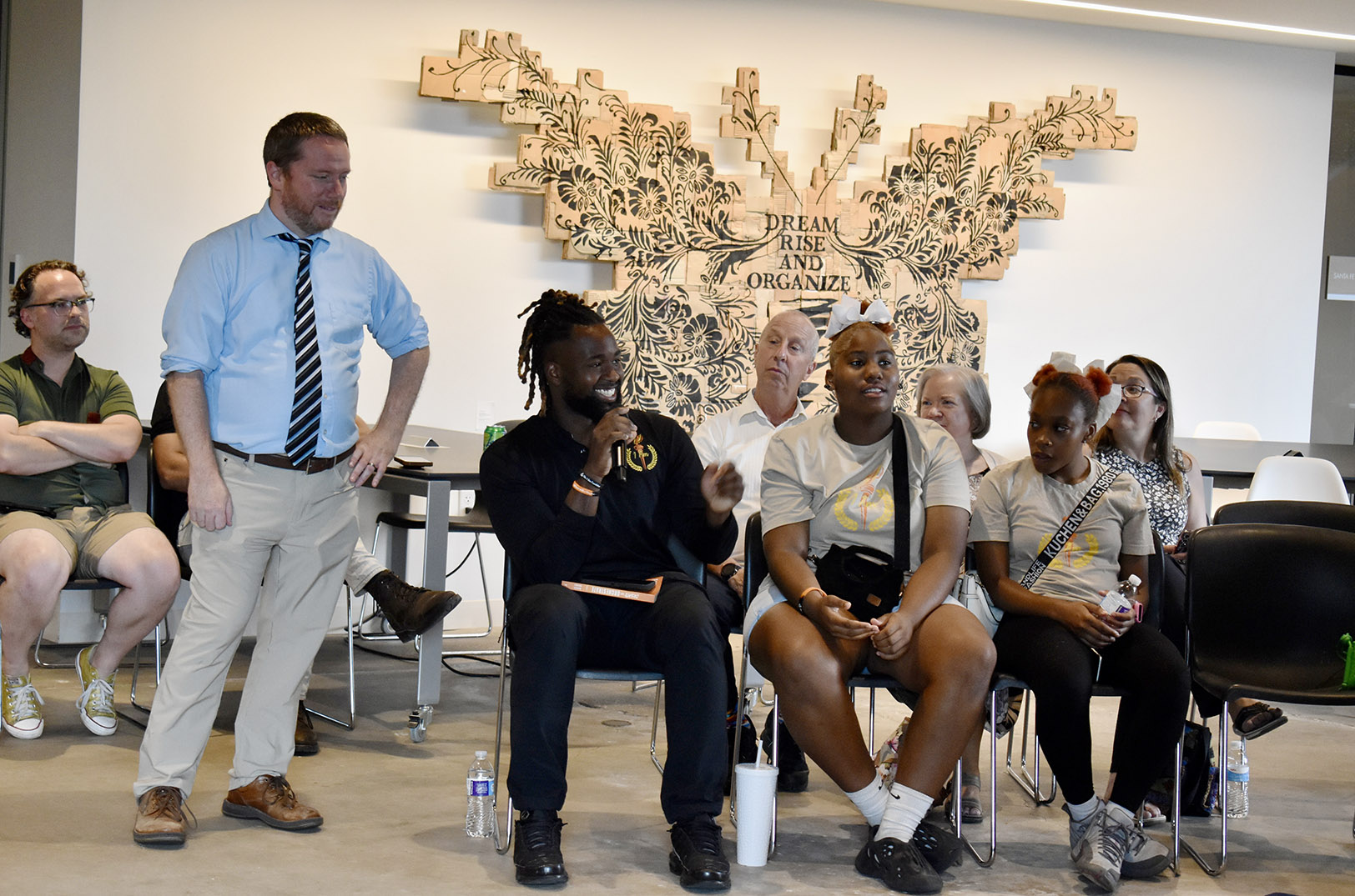 Audience members ask interns questions during the summer Social Change Internship (SCI) showcase for participating ProX interns; photo by Taylor Wilmore, Startland News