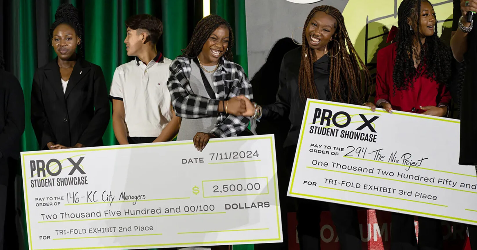 Students celebrate their winning efforts at the 2024 ProX Summer Showcase; photo courtesy of the Ewing Marion Kauffman Foundation