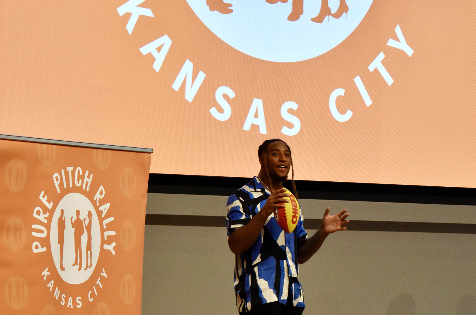 Kansas City Chiefs safety Justin Reid at the 2023 Pure Pitch Rally; photo by Nikki Overfelt Chifalu, Startland News