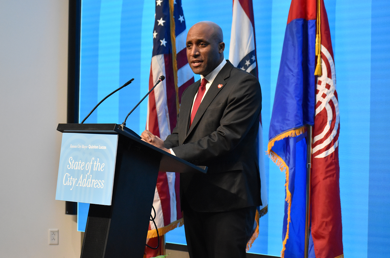 Kansas City Mayor Quinton Lucas speaks during the 2024 State of the City address; photo by Nikki Overfelt Chifalu, Startland News